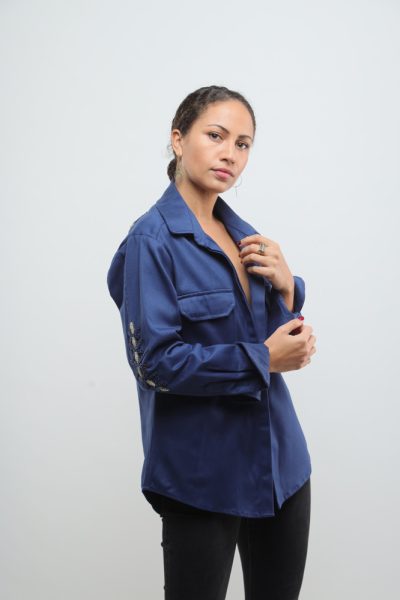 Deep Cobalt blue jacket with beaded kuba flower