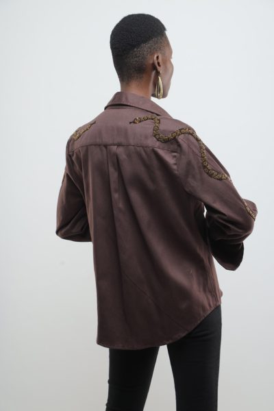 Chocolate brown jacket with beaded kuba flowers