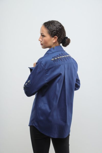 Deep Cobalt blue jacket with beaded kuba flowers