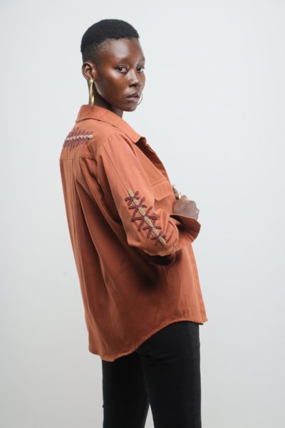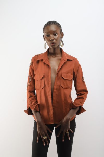 Rust jacket with beaded kuba flowers