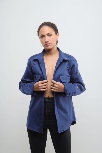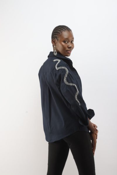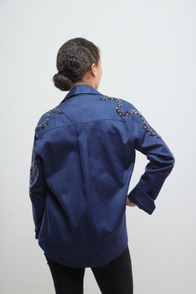 Dark navy blue jacket with beaded snakes