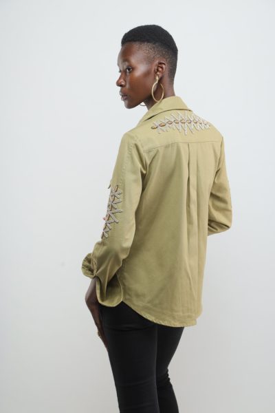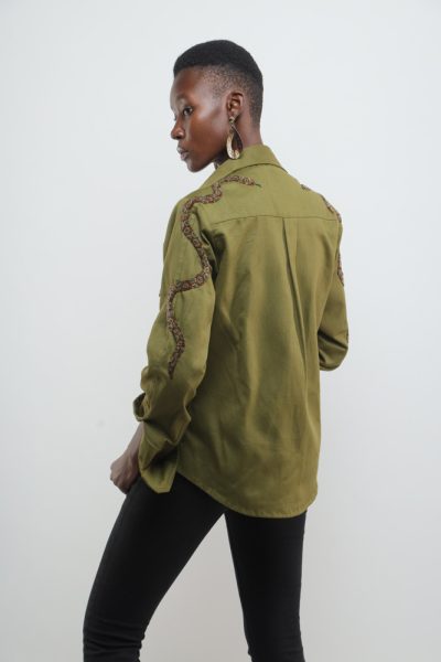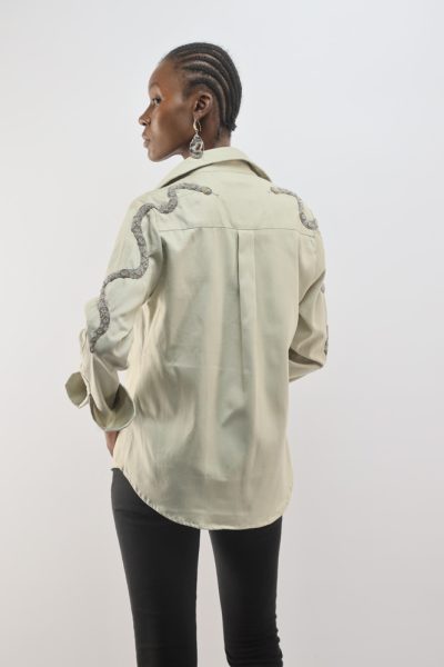 Khaki jacket with beaded snakes