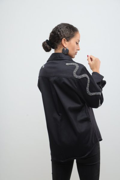 Black jacket with beaded snakes