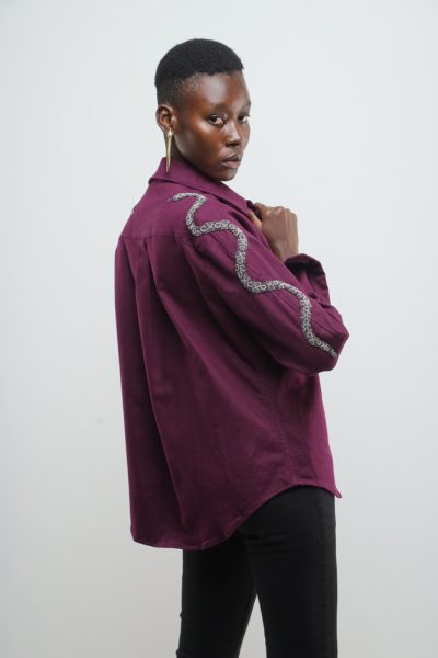 Aubergine jacket with beaded snakes