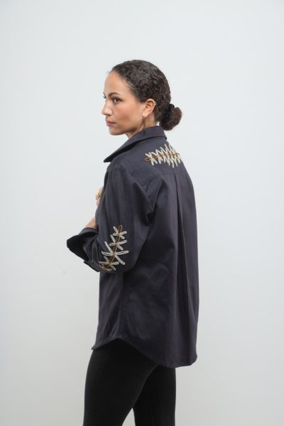 Black jacket with beaded kuba flower