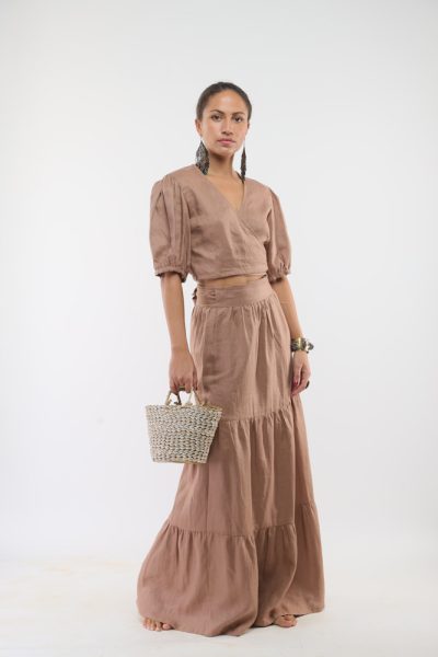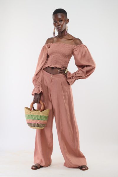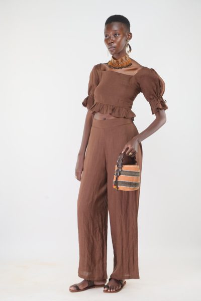Cinnamon Kizingitini frill top and cinnamon Kipunngani wide leg pant