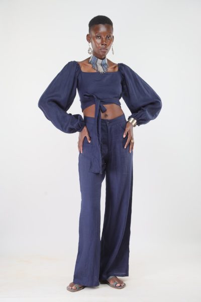 Cobalt blue Kipungani long sleeved top and cobalt blue Kipunngani wide leg pant