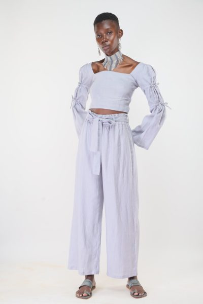 Lavender grey Kizingitini long sleeved tie top and lavender grey Kizingitini tie pant