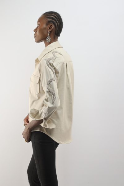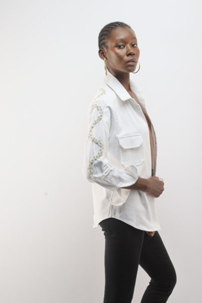 White jacket with beaded snakes