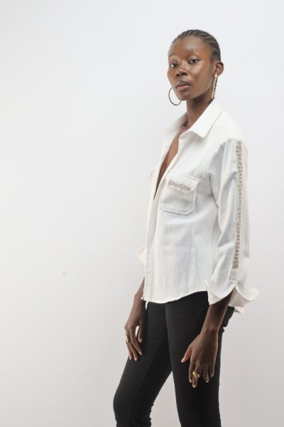 White jacket with beaded kuba flower