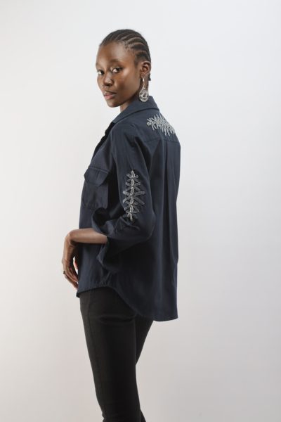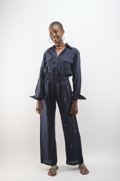 Navy blue Chyulu jumpsuit with beaded bugs
