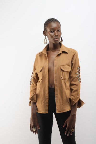 Khaki jacket with beaded kuba flower