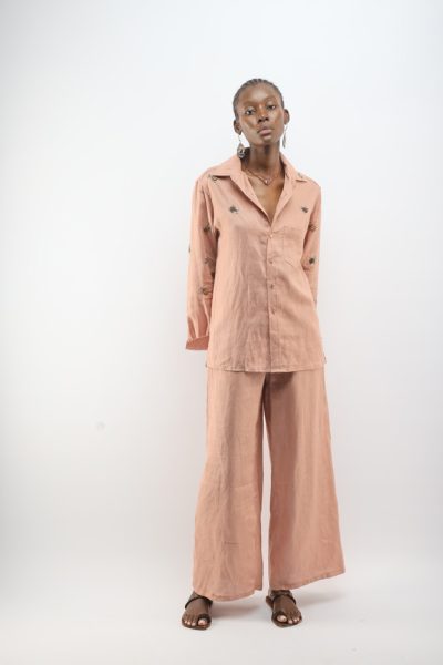 Rose dusty pink shirt with beaded bugs and rose dusty pink pleated Lamu palazzo pant
