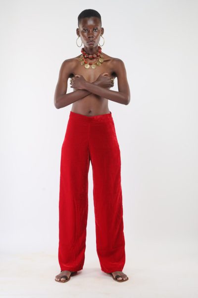 cherry red velvet wide leg pant