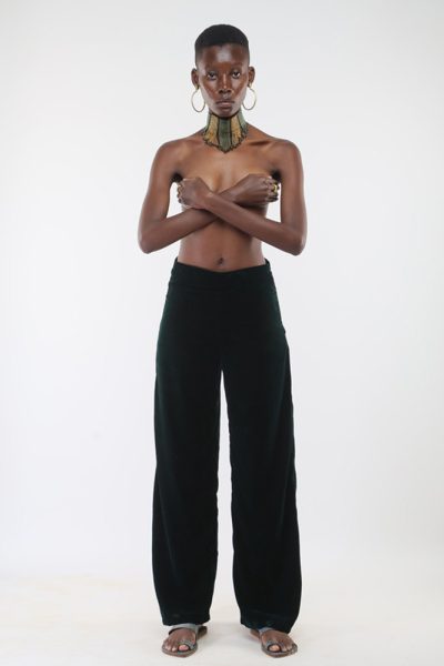 dark emerald velvet wide leg pant