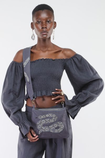 Charcoal grey safari bag with beaded snake