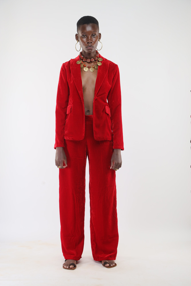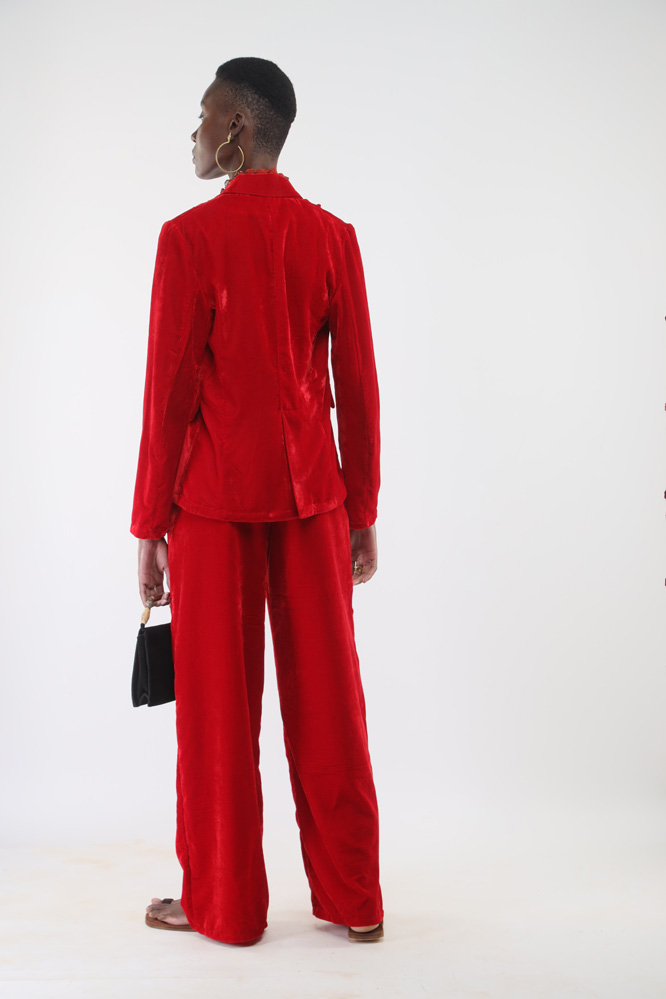 Made from silk velvet and hand stitched in Kenya. We support slow fashion by producing small, made-to-order collections to minimize environmental impact. Custom orders are available in any measurement and fabric colour from our stock. Please allow 3 to 4 weeks for stitching and delivery.