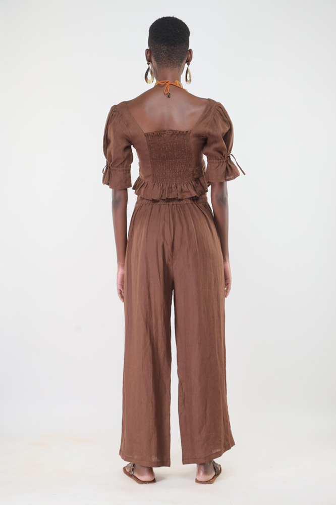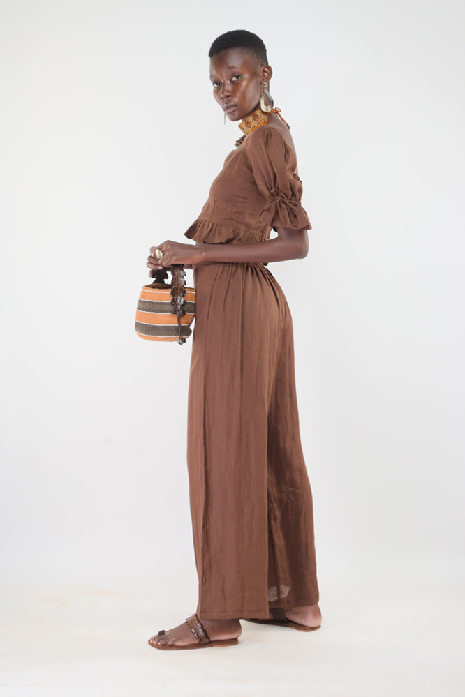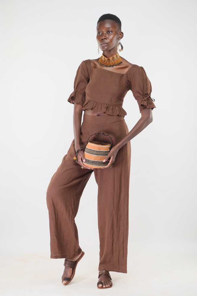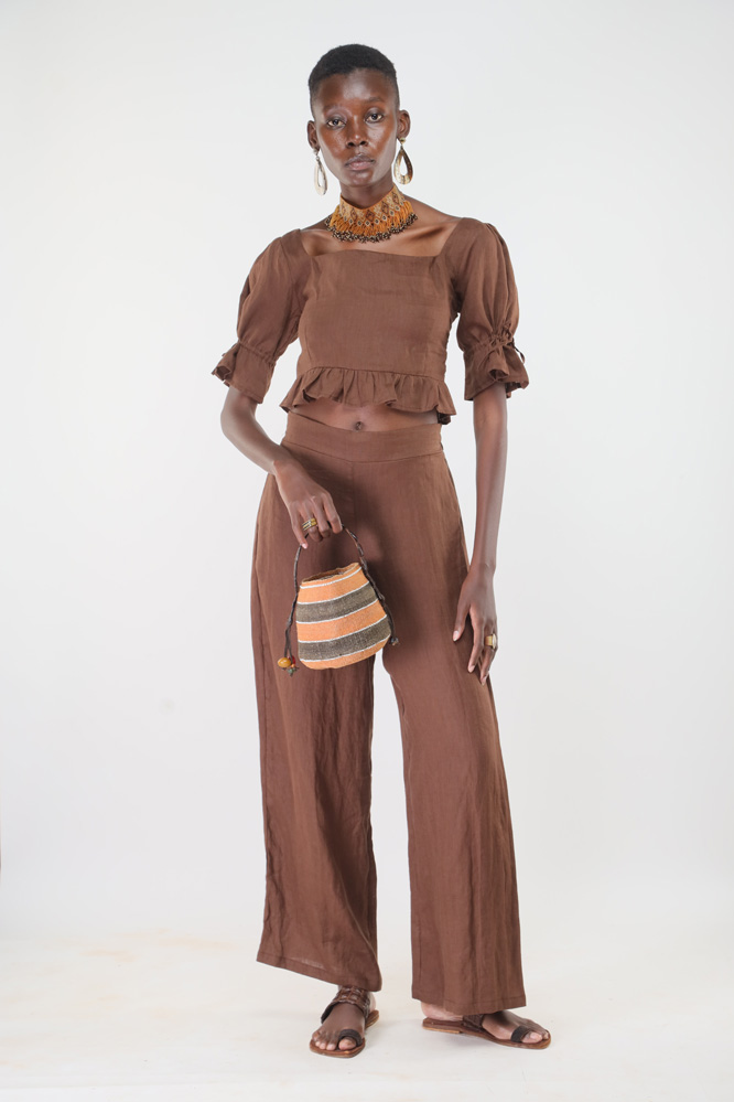 Made from linen and hand stitched in Kenya. We support slow fashion by producing small, made-to-order collections to minimize environmental impact. Custom orders are available in any measurement and fabric colour from our stock. Please allow 3 to 4 weeks for stitching and delivery.