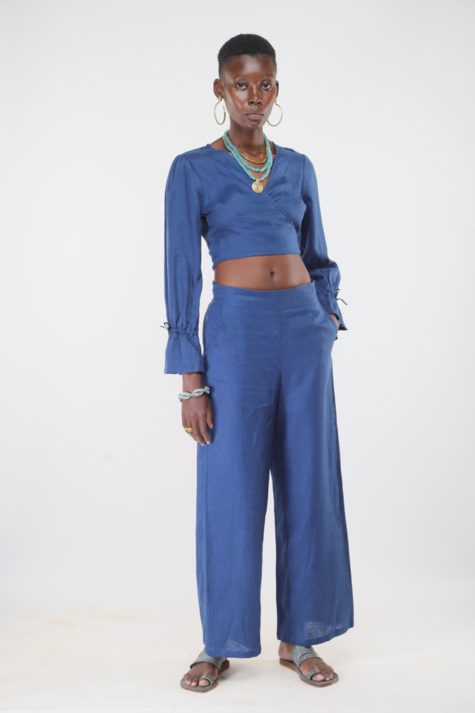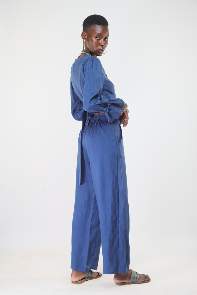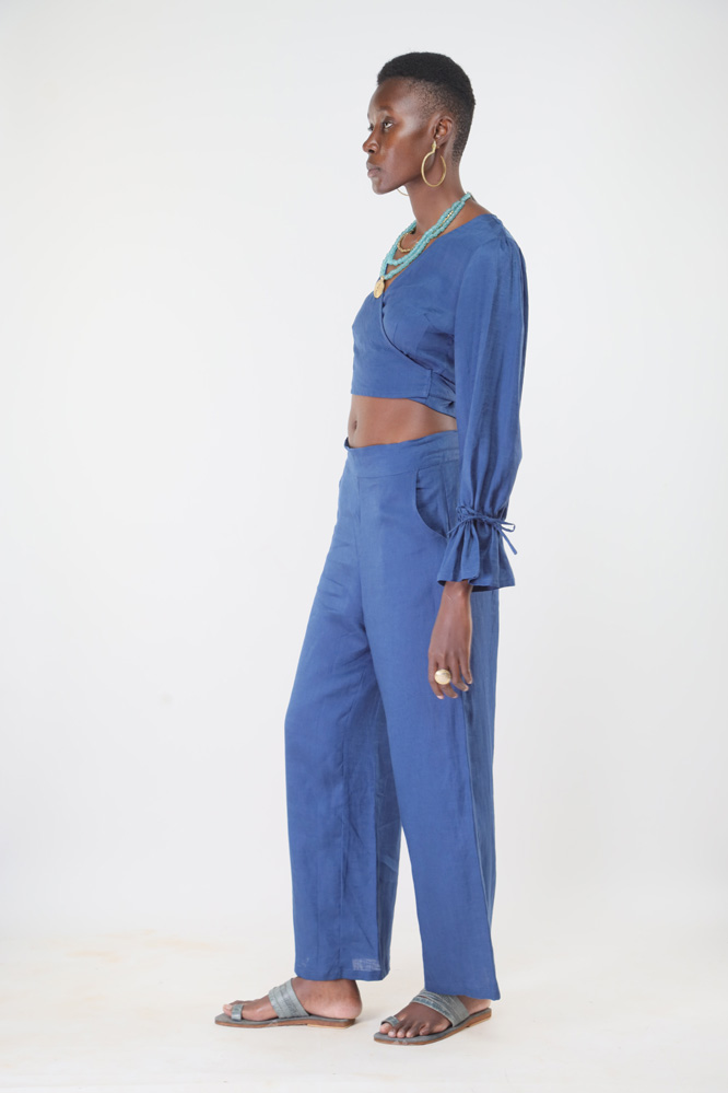 Made from linen and hand stitched in Kenya. We support slow fashion by producing small, made-to-order collections to minimize environmental impact. Custom orders are available in any measurement and fabric colour from our stock. Please allow 3 to 4 weeks for stitching and delivery.