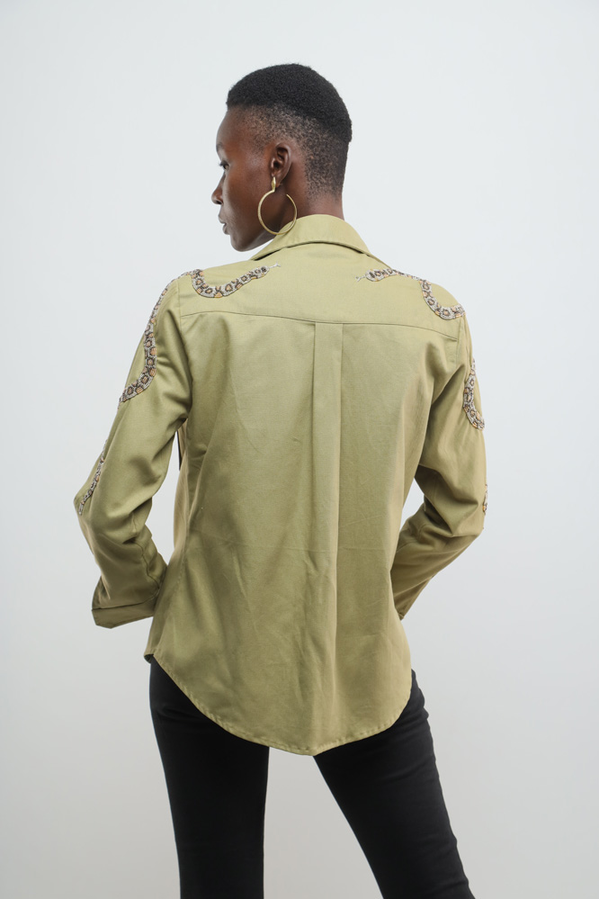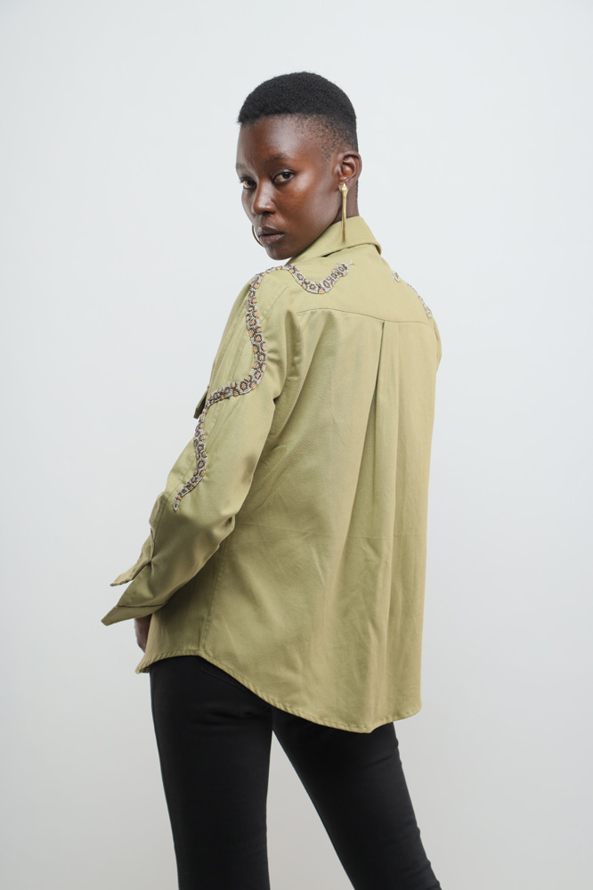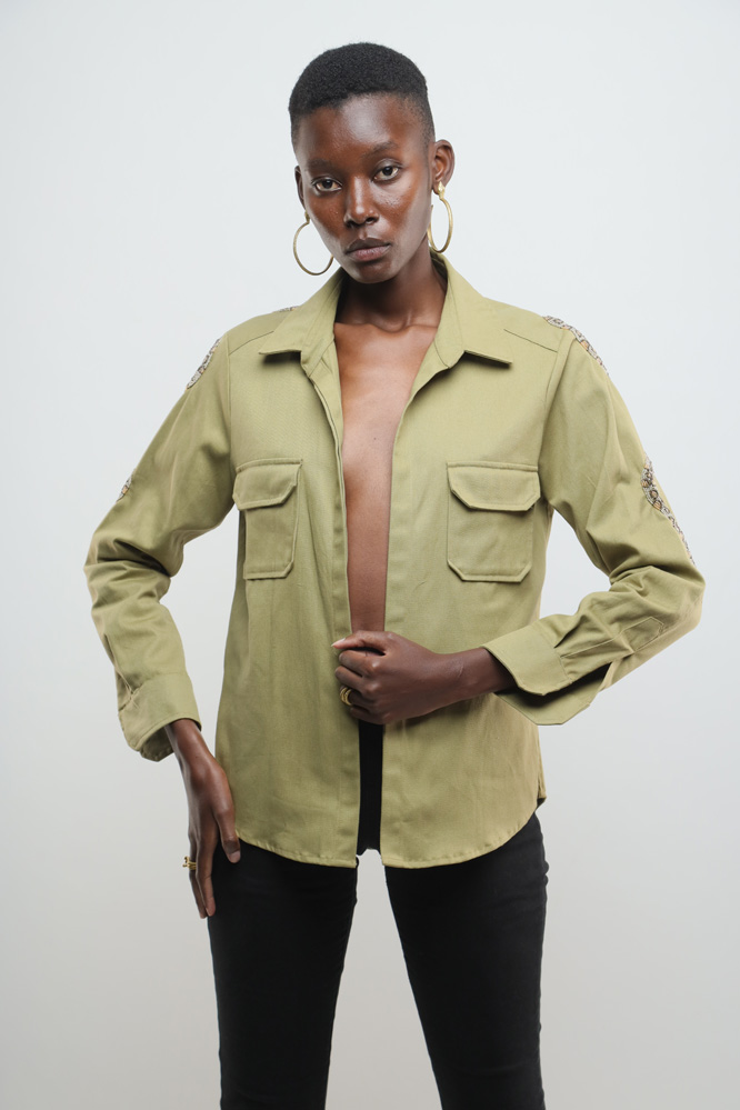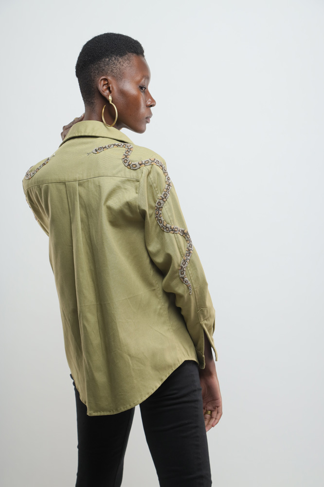Made from cotton drill and hand beaded by Kenyan women. We support slow fashion by producing small, made-to-order collections to minimize environmental impact. Custom orders are available in any measurement and fabric colour from our stock. Please allow 3 to 4 weeks for stitching and delivery.